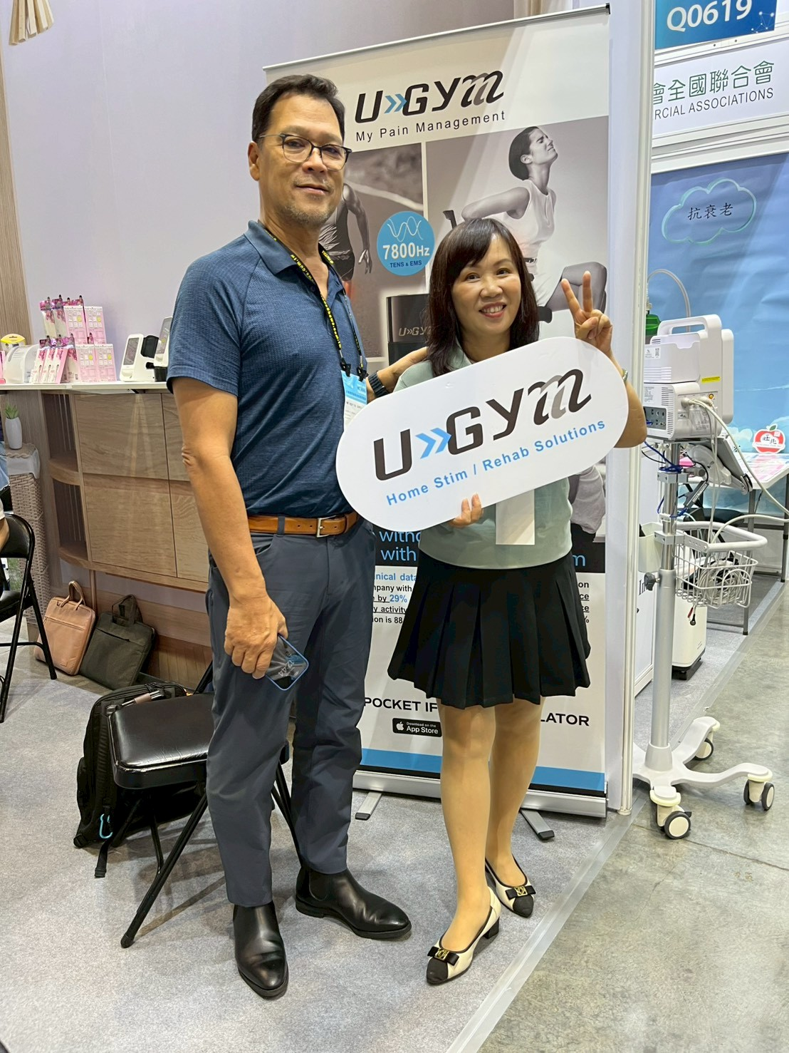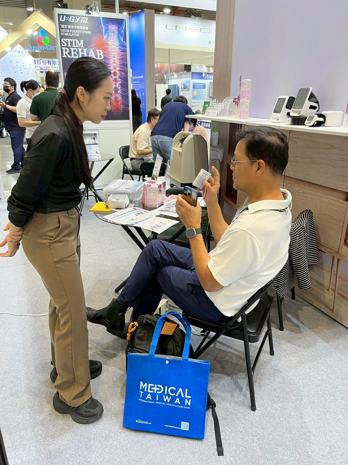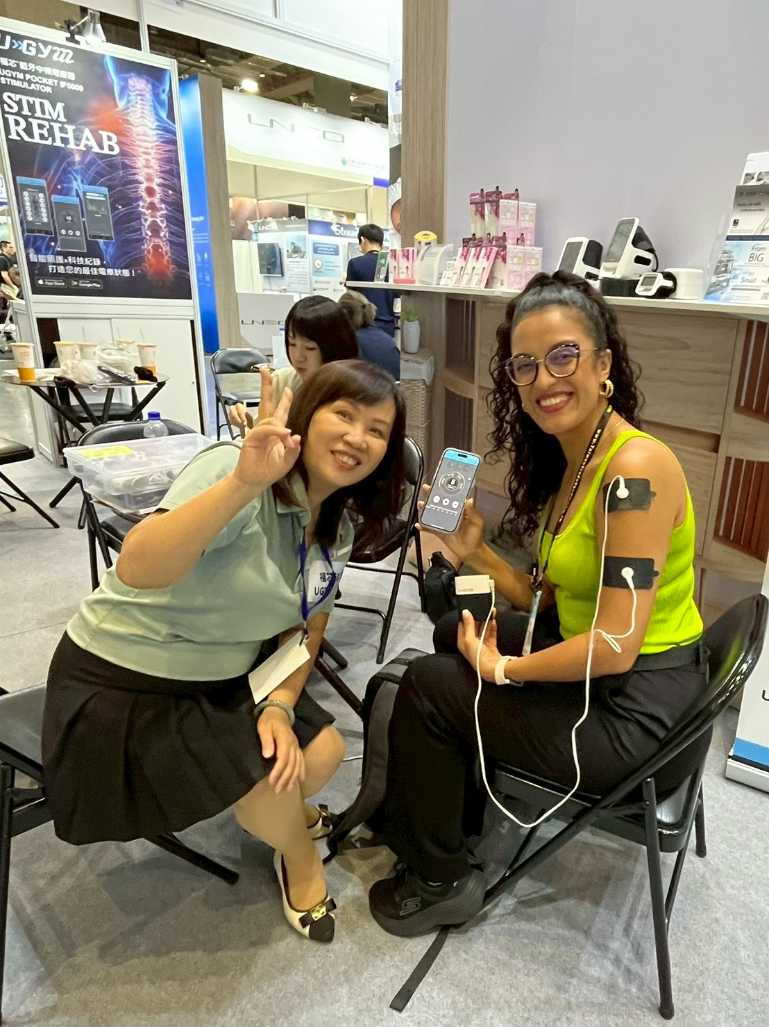 福芯科技與杏昌生技聯展,除了國內專業人士外,國外有來自菲律賓、馬來西亞、泰國、日本、韓國及中南美洲的瓜地馬拉客戶來體驗--福芯藍牙中頻電療器。