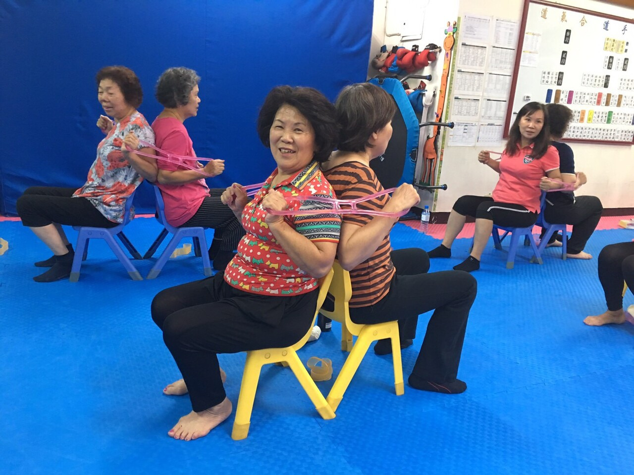 感謝班代志仁飛騰武道館提供的場地,讓中和地區的大哥大姐們一起作肌力訓練來「勇腳勇骨」。