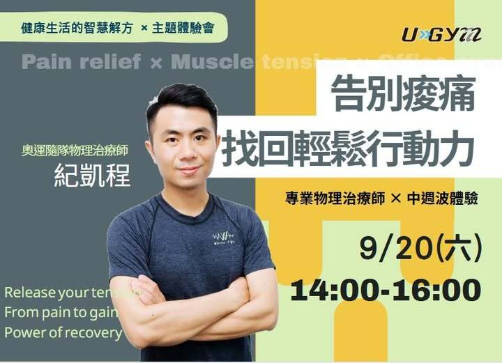 本次體驗會邀請 奧運隨隊物理治療師 ─ 紀凱程,帶大家認識常見的痠痛問題,並透過簡單實用的舒緩動作,幫助你在生活中輕鬆改善不適。除了專業分享,更能現場體驗 口袋型中週波電療科技,親身感受來自醫療等級的電刺激放鬆,給身體最直接的舒緩能量![]()